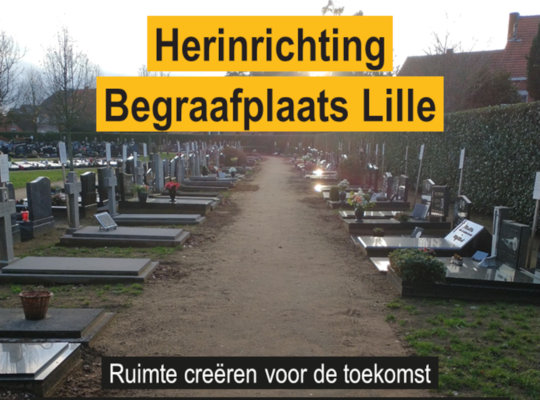De begraafplaats van Lille heeft te maken met een nijpend plaatsgebrek. Dit is niet nieuw, al in de vorige legislatuur zat dit er aan te komen, maar toen is er niet voor een toekomstgerichte oplossing gekozen. Onze bestuurscoalitie is vorig jaar in actie gekomen en is gestart met het aanplakken van graven van voor 1980. Dit kennisgevingsproces duurt ongeveer een jaar, om alle nabestaanden de kans te geven na te denken of ze een graf willen behouden of niet. De ruimte die vrijkomt moet optimaal benut kunnen worden, met een goed evenwicht tussen reguliere begraafplaatsen en het urnenveld. Een studie dient hiervoor te worden opgemaakt.